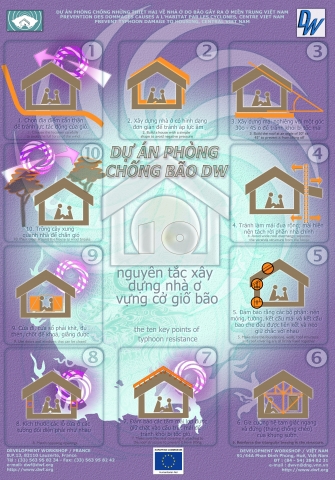 ![]() | Central Viet Nam. DWF UNDP/UNCHS project for Typhoon resistant construction in Central Viet Nam, 1989 - 92, presenting the ten key principles of typhoon resitant construction (see Preventive strengthening & mitigation ). the text for each key point is part of a ten key points poem, and can also be sung!