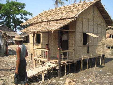 Hlaing Bone Shelter project, Myanmar :DWF assisted and guided the Save the Children Alliance, Myanmar on a project for the construction of 700 new and safer houses and the strengthening of a further 150 houses around the town of Hlaing Bone in the in the centre of the Myanmar delta region. The framed houses, with bamboo mat walls and floors and thatched roofing incorporate eight of the ten key points of cyclone resistant construction. DWF undertook multiple monitoring missions. Completion in 2010.
