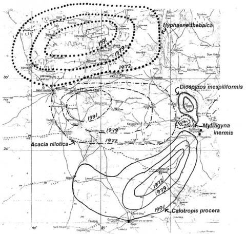- As part of the DWF Woodless Construction programme in the Sahel region of West Africa, since 1990 DWF and colleagues carried out a series of studies on the links between human habitat and the environment in West Africa. An aspect of this work considered the declining availability of the most favoured and durable species of trees - and particualrly palm tree trunks used as roofing beams, including Borassus aethiopum (Borassus Palm, also known as Ronier in the Sahel) and Hyphaene thebaica (known as Doum Palm in the Sahel), which could last many decades. The excessive cutting of these sought after trees contributed to making them rare; surveys showed the shrinking areas where such palms could be found. Substitute species used for roofing beams often have poorer durability requiring more frequent replacement, sometimes after only three or frour years, adding to the rate of tree cover depletion and thus to desertification.See reports and articles in French;