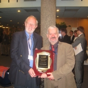 Guillaume Chantry (right), DWF programme coordinator in Viet Nam, and John Norton, DWF President, receive the 2010 Housing and Urban Development South-South Transfer Award - Special Mention (ILO, Geneva)